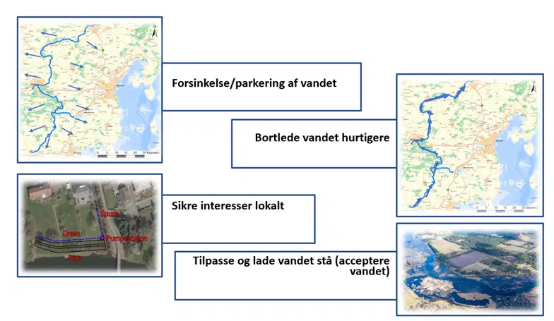 De 7 Gudenå kommuner har ligeledes i fællesskab udarbejdet en helhedsplan for vandhåndtering langs Gudenåen, hvor håndteringen af vand er undersøgt gennem 4 forskellige tilgange (se billedet nedenfor).